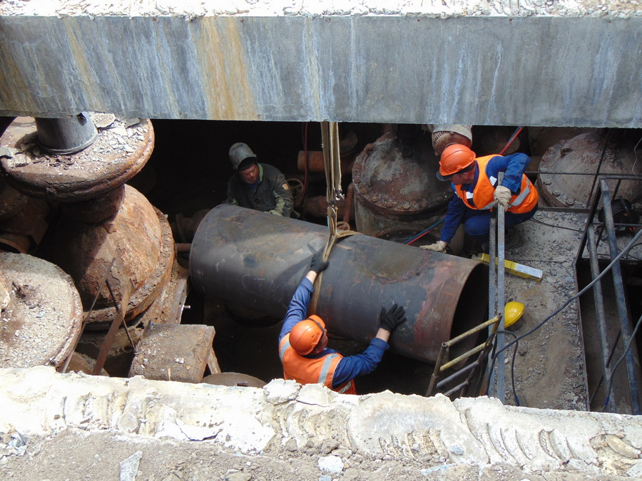 На правом берегу в ходе испытаний 6 мая ФГУП «УЭВ» выявил 22 дефекта на обратном трубопроводе. С началом работ обнаружили еще три. Например, в теплокамере рядом с перекрестком улиц Российской и Демакова сначала выявили протечку трубопровода на отводе диаметром 500 миллиметров. Когда обследовали теплоузел, оказалось, что в плохом состоянии и участок примыкающей трубы диаметром 800 мм. Приняли решение заменить и его, чтобы через какое-то время не возвращаться сюда повторно.
