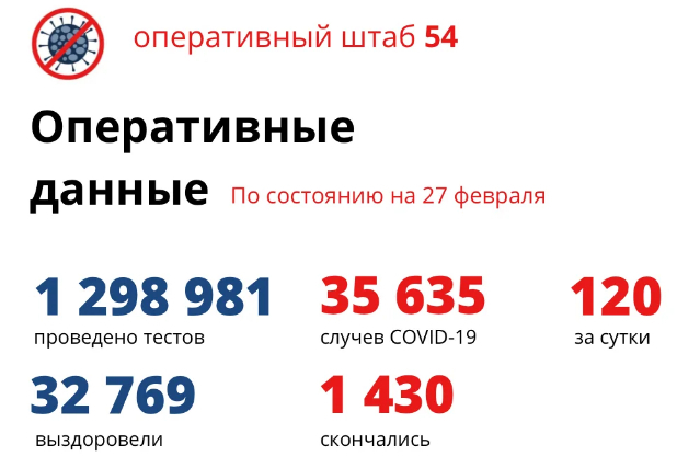 Оперативный штаб дал статистику по ситуации с COVID-19 на утро 27 февраля. 120 новосибирцев заболели, 110 вылечились и девять умерли.
