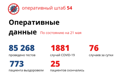 По данным оперштаба, на утро 21 мая стало известно о 76 заболевших коронавирусом и двух скончавшихся. При этом 43 пациента выписаны по выздоровлению.