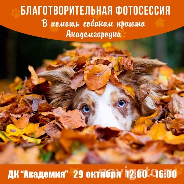 29 октября с 12.00 в сквере у ДК «Академии» состоится очередная благотворительная фотосессия в пользу приюта.
