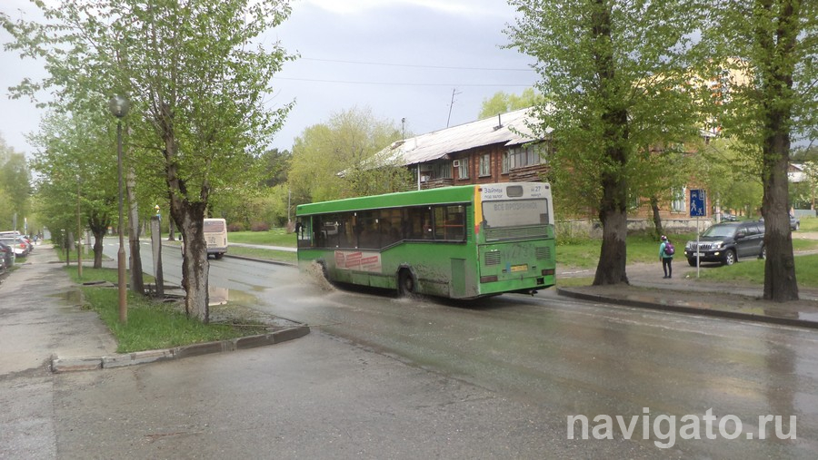 Широким, во всю ширину газона, веером летят брызги из-под колёс машин, едущих мимо высоток на проспекте Академика Коптюга. На встречной полосе вода скопилась в кармане при повороте от Института математики к лесу. Глубокие колеи на проспектах Коптюга и Лаврентьева собирают дождевую воду в ручьи, которые можно перепрыгнуть. Это очень помогает людям, переходящим дорогу на пешеходных переходах.