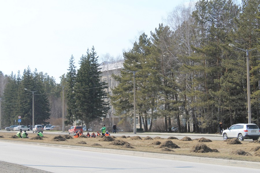 Сегодня, к примеру, преобразился проспект Академика Коптюга. За уборку газона на разделительной полосе там отвечает отдел эксплуатации Управления делами СО РАН, сообщили в администрации. Бригада сгребала старую траву, ее тут же грузили в автомобиль и вывозили.