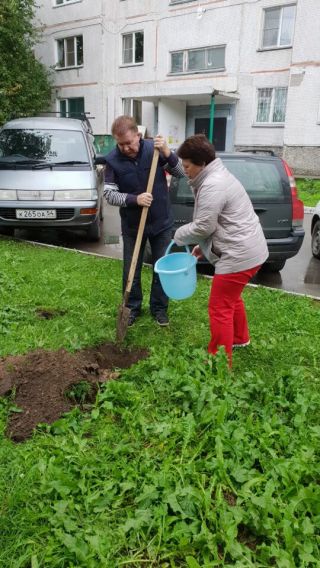 Несмотря на пасмурную погоду, утро 28 августа началось для жителей дома в микрорайоне Щ с приятных хлопот. Жители реализовали мечту о посадке голубых елей около своей многоэтажки.