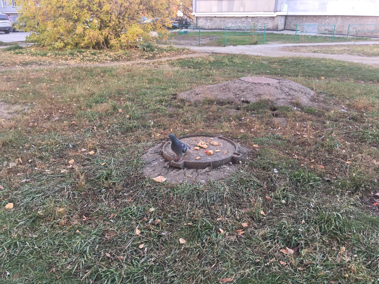 Пожилая женщина с небольшим пакетом хлебных крошек, круп и семечек потихоньку идет к колодцам теплокамер на небольшой лужайке в одном из дворов Академгородка. На люки колодцев она высыпает всё принесённое «добро» и ждёт в сторонке, пока несколько десятков голубей прилетят к большой кормушке. Долго стоять не приходится: птицы тут как тут!