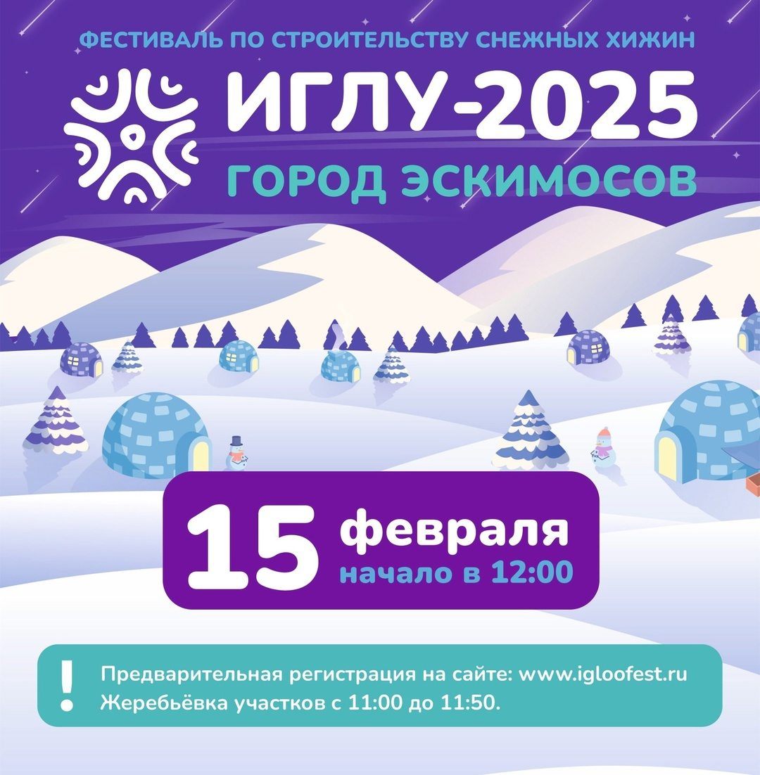 Фестиваль «Иглу–2025. Город эскимосов» пройдет 15 февраля на территории Новосибирского водохранилища в микрорайоне ОбьГЭС. В течение нескольких часов команды будут возводить снежные хижины, украшать их, а также смогут поучаствовать в культурной программе.