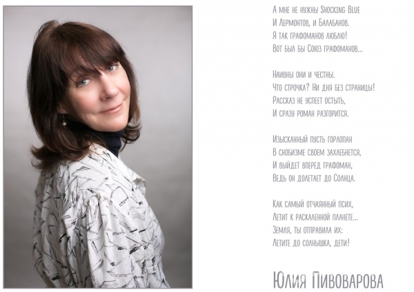 - Человеческое лицо - это уникальная, неповторимая история жизни, набор пережитых эмоций, творческих исканий, находок и потерь. К сожалению, у многих поэтов на аватарках в соцсетях стоят снимки не лучшего качества, часто сделанные случайно на том или ином мероприятии. И я подумала: если назвать поэтов хоть Серебряного века, хоть советских, в памяти всегда всплывает определённый образ: Цветаева, Есенин, Маяковский, Бродский, Евтушенко… А у моих современников и земляков-сибиряков таких портретов нет. Принципиальное решение: принявшие участие в проекте поэты получат свой студийный фотопортрет абсолютно бесплатно! Мне захотелось отблагодарить местных мастеров слова за их талант, чуткость и ранимость души, умение выражать в стихах чувства и мысли.Идея проекта вынесена в слоган: «…чтобы город знал своих поэтов в лицо!» Нам есть кем гордиться!