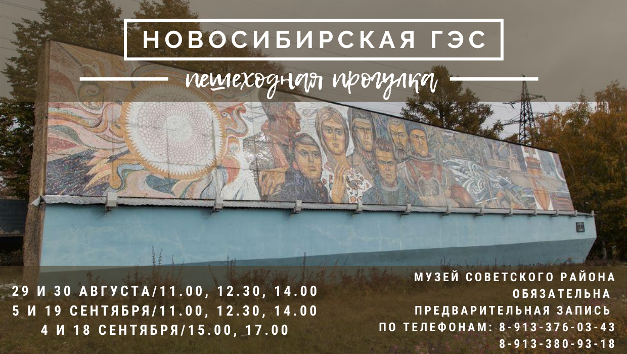 Музей Советского района приглашает на пешеходную прогулку «Новосибирская ГЭС». Почему для строительства гидроэлектростанции было выбрано место в поселке Нижние Чемы, как готовили бассейн под Обское водохранилище, каким образом проходило перекрытие реки, откуда взялась стела «Турбина» и кто те люди, которые изображены на панно «Покорители Оби» – обо всём этом расскажут во время прогулки.