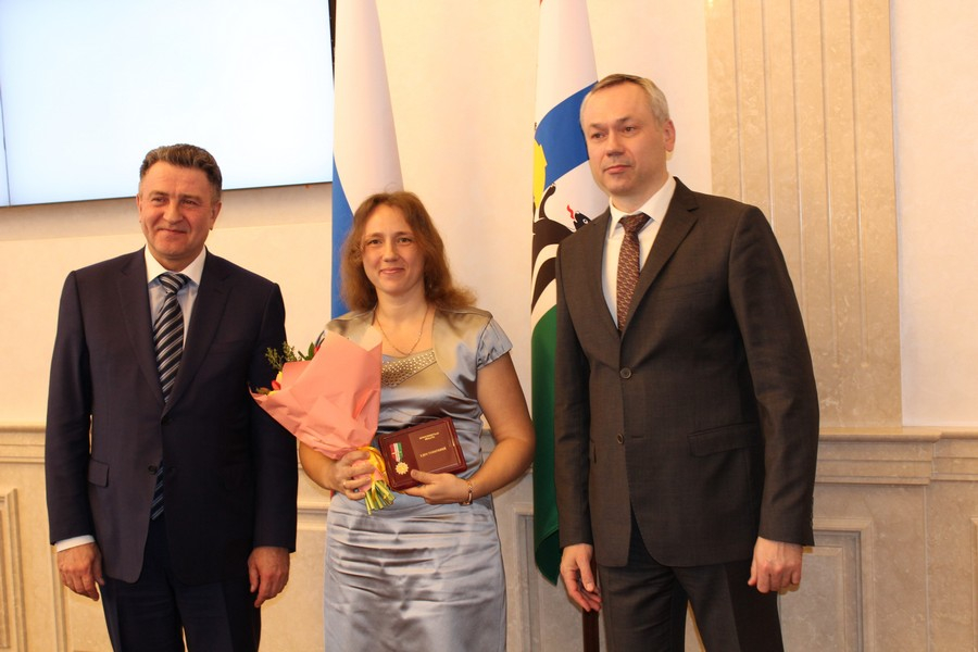 Знак отличия «За материнскую доблесть» Анастасии Михайловне и еще 17 многодетным матерям вручил губернатор Новосибирской области Андрей Травников на торжественном мероприятии, которое состоялось 5 марта в малом зале правительства НСО.