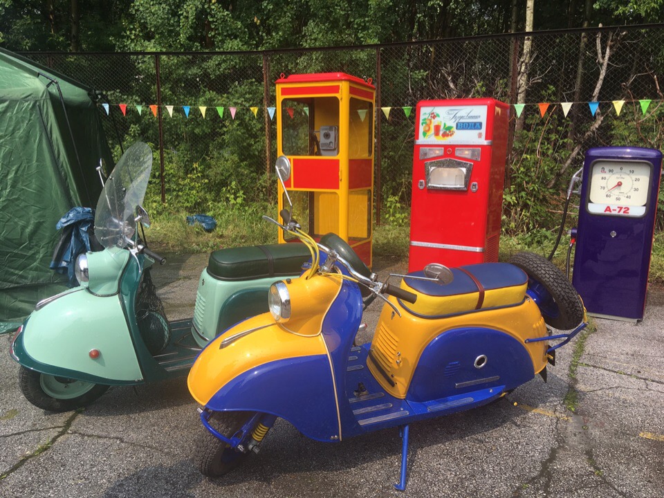 Среди представленных на фестивале экспонатов не только мотоциклы, но и ретротехника. Всё то, что сегодня живёт в стенах КЮТа и не только. Есть и старые добрые автомобили, и даже телефонная будка из советских времен, и аппарат с газировкой. Кстати, он работал!