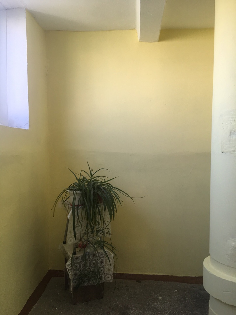 Автор этих строк застал Людмилу (фамилию она просила не называть) за работой. Осталось доделать совсем немного – первый этаж. Позади – восемь! Стены покрашены в нежно-лимонный цвет. Таким он был и до ремонта. Но со временем поверхность выцвела, потускнела, да и пыль, грязь сделали свое дело.