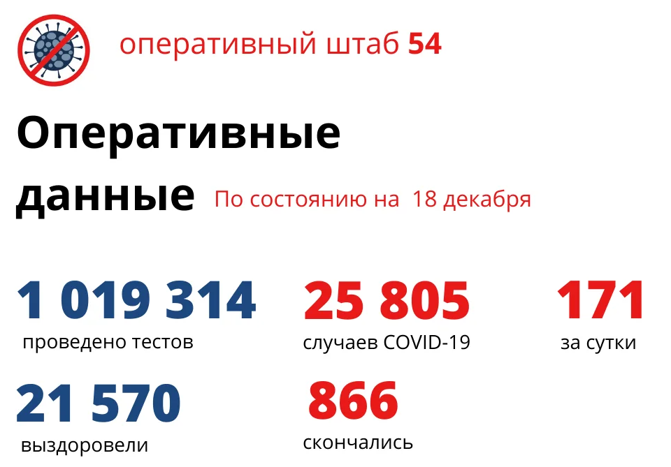 Хроника COVID 18 декабря: 171 человек заболели, 203 вылечились, 6 умерли