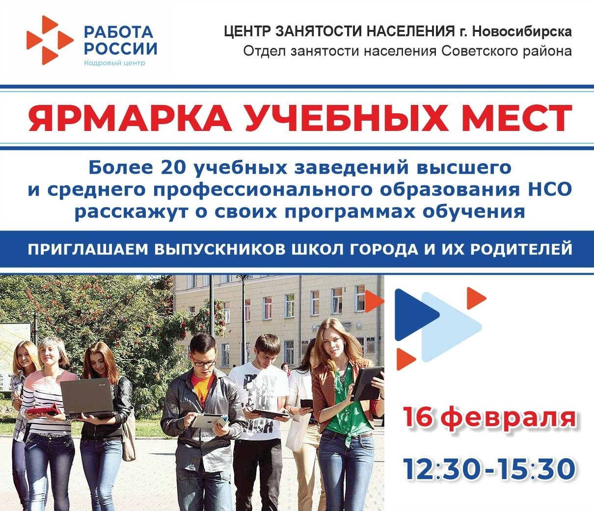 Ярмарку учебных мест проводит центр занятости населения Советского района. Мероприятие будет организовано в Новосибирском политехническом колледже (ул. Российская, 3, учебный корпус) с 12.30 до 15.30 в пятницу, 16 февраля.