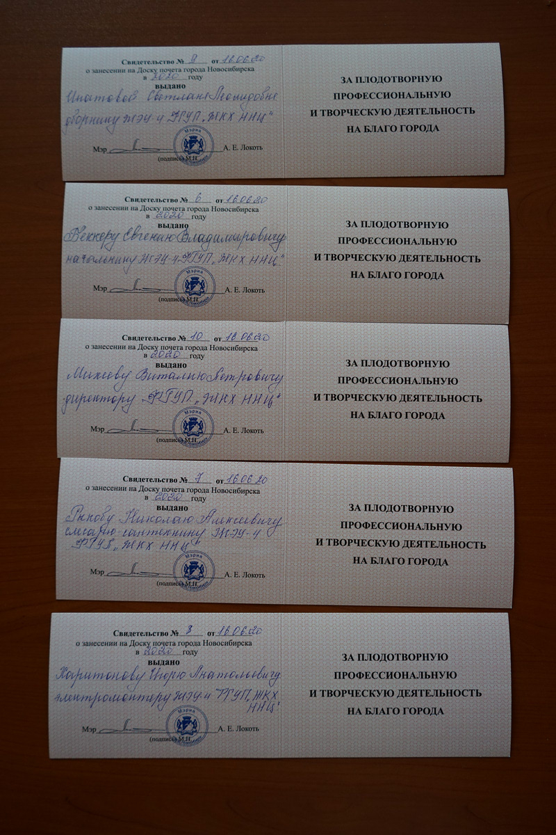 На протяжении 17 лет каждый год к празднованию Дня города обновляют Доску почета Новосибирска. Этот год, несмотря на пандемию коронавируса и отмену массовых мероприятий, не стал исключением. Новые имена внесены. Среди них – пятеро новосибирцев, работающих в Советском районе.