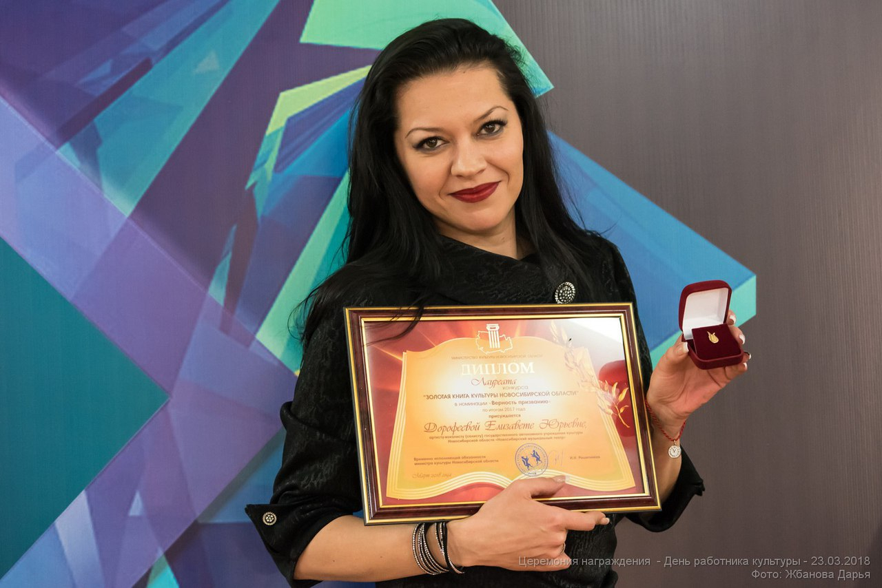 В число награждённых вошла и солистка Новосибирского музыкального театра Елизавета Дорофеева, недавно отметившая 20-летие творческой деятельности. Уроженка наукограда Кольцово, Дорофеева включена в номинацию «Верность призванию» за большой личный вклад в развитие сферы культуры города Новосибирска и Новосибирской области. Елизавета – дипломант Национального театрального фестиваля «Золотая маска» за блестящее исполнение мужской роли Графа Альмавивы в спектакле «Фигаро здесь!» и номинант «Маски» за роль Ольги Зотовой в мюзикле «Гадюка». Она неоднократно становилась лауреатом новосибирской театральной премии «Парадиз» – за роли в спектаклях «Гадюка» и «Труффальдино». На сегодняшний день в творческом багаже актрисы более 30 ролей.