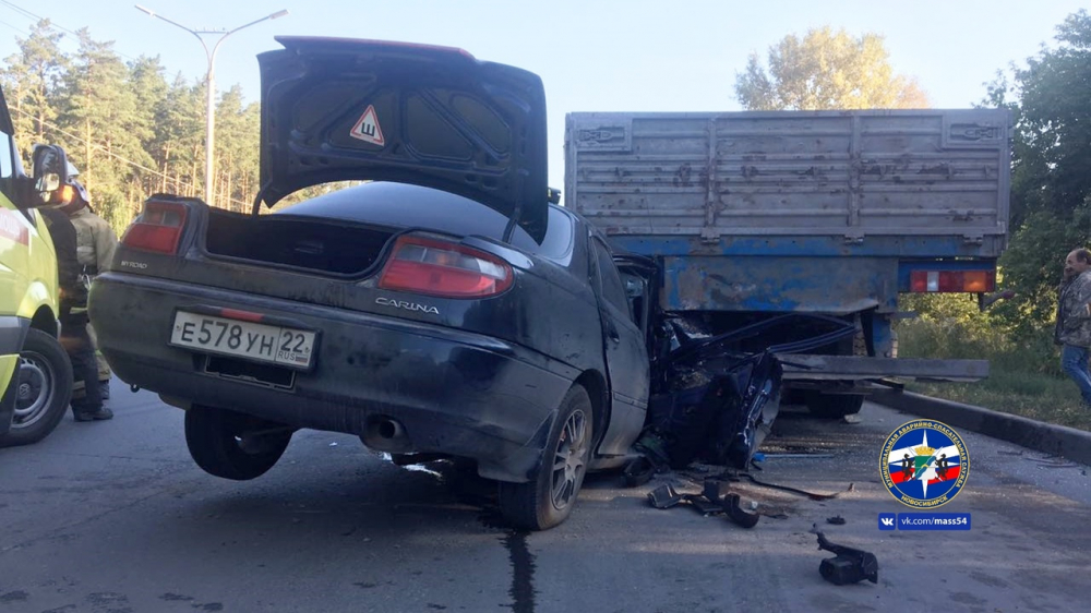Утро понедельника, 20 августа, началось в Советском районе с серьезной аварии. Недалеко от клиники Мешалкина легковой автомобиль влетел в припаркованный большегруз.