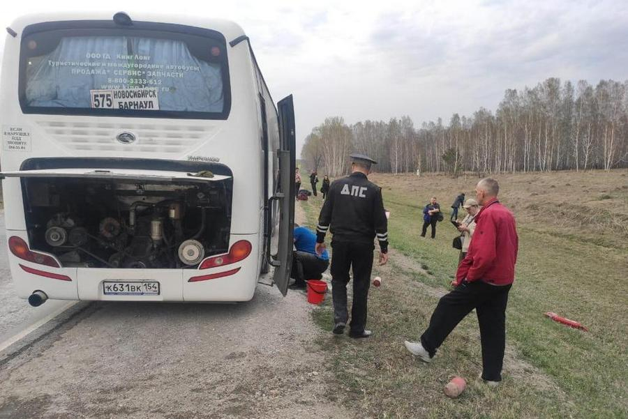Инспектор по громкой связи попросил водителя автобуса остановиться. Далее он помог эвакуировать пассажиров, а затем потушил огонь, – рассказали в ГИБДД по Новосибирской области.