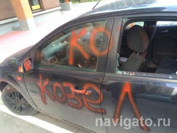 На ул. Шатурской 6 сентября прохожие заметили автомобиль Ford Focus с разбитыми стеклами, вымазанный алой краской и яйцами.