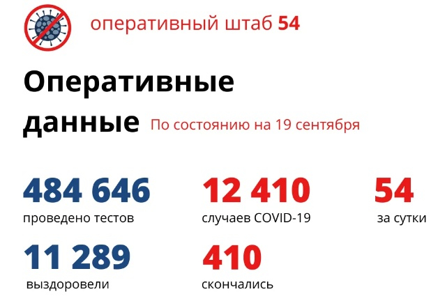 За последние сутки в Новосибирской области выявлено 54 случая заражения коронавирусной инфекцией. С конца марта всего зарегистрировано 12410 заболевших, в том числе 734 ребенка. За последние 24 часа диагноз подтвердился у четверых детей.