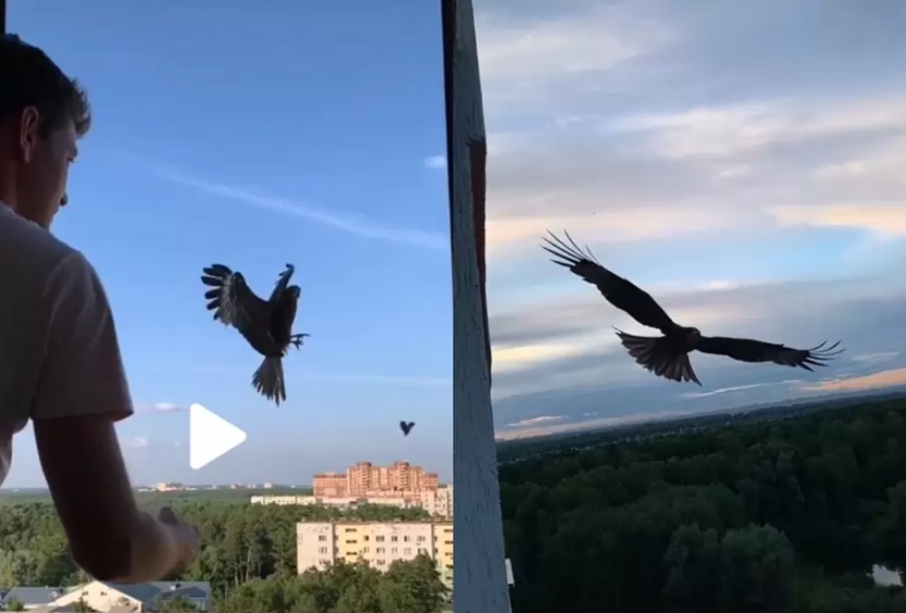 Новосибирец Николай Белозеров живет на 13 этаже. Как рассказывает мужчина, самку коршуна он приручил еще в 2020 году. Конечно, хищная птица близко не подлетает, но всегда рада несколько раз за день поесть мясное угощение.