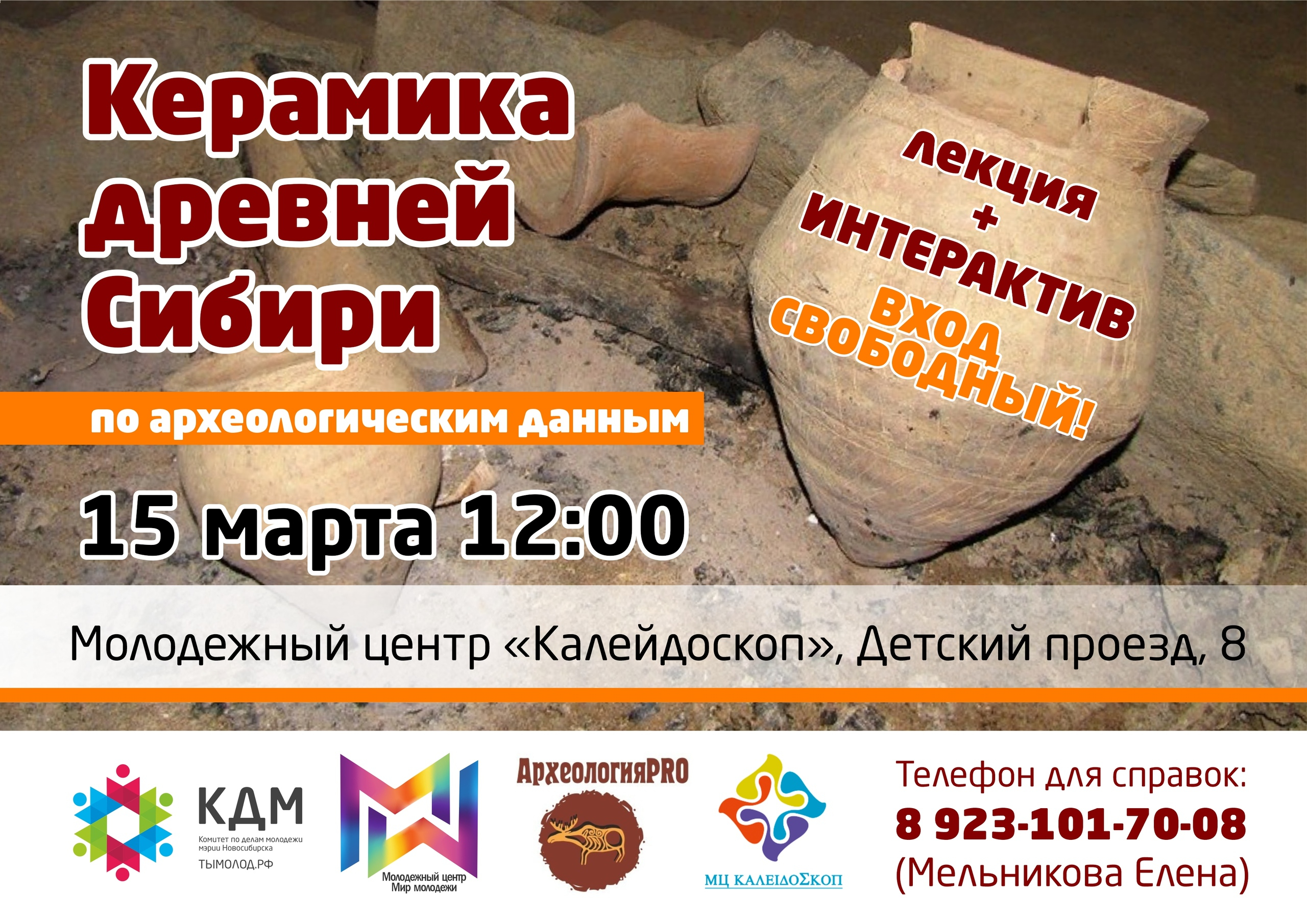 15 марта, в воскресенье, в 12.00 в молодежном центре «Калейдоскоп» (Детский проезд, 8) пройдет лекция «Керамика древней Сибири: по археологическим данным».