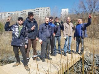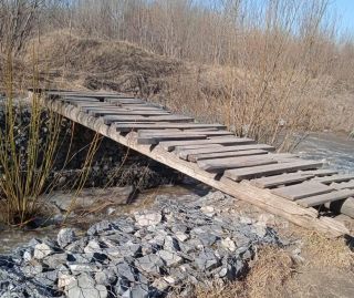 Мостик через малую реку Ельцовка обеспечивает жителям микрорайона кратчайший путь к железнодорожной платформе. Со временем бревна и доски мостика подгнили, и пользоваться деревянным сооружением стало небезопасно.