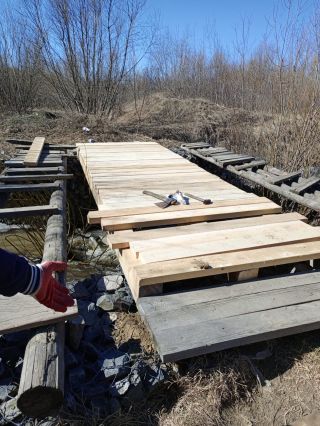 Всё взял в свои руки Николай Николаевич Шабельников. Буквально за неделю задуманное реализовали. Николай Николаевич закупил на выделенные депутатом деньги стройматериалы, был прорабом на объекте. Мост уже практически готов, осталось сделать перила. На них нужно еще купить брус. Денег пока нет, но в совете ТОС надеются на помощь депутатов и бизнеса. И тогда жители Нижней Ельцовки смогут без опаски ходить на электричку.