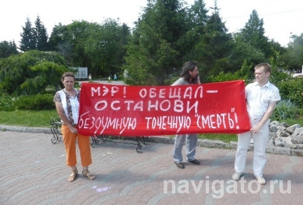 Как рассказали участники пикета, акцию в Первомайском сквере они устроили, чтобы напомнить мэру Анатолию Локтю о его позиции против точечной застройки. «Мы просто думаем, что данную ситуацию лучше, чем мэр, никто не разведет», — подчеркнула одна из жительниц микрорайона Шлюз.