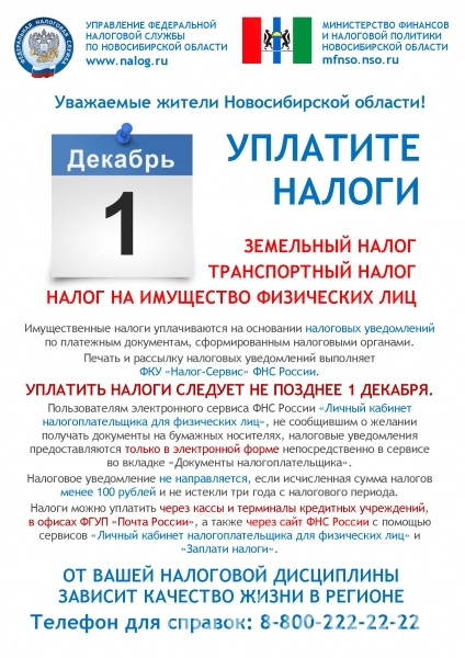 Жителям Советского района напоминают: заплатить налоги необходимо до 1 декабря