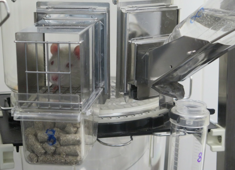 Устройство клетки таково, что можно определить, сколько корма в сутки съела каждая крыса, а сколько просыпала, какой объём воды выпила, а какой пролила. Конструкция позволяет собирать мочу, кал и потом отправлять их на анализ, чтобы узнать, каково потребление соли и нормально ли функционируют почки.