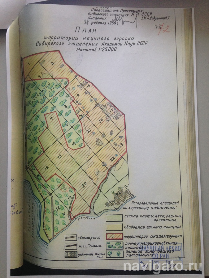 Документ, между прочим, вышел в 1957 году под грифом «Совершенно секретно». Этому предшествовала серьёзная аналитическая, кабинетная, кулуарная и «подковёрная» работа ведущих учёных страны того периода. К чести отцов-основателей будущего Сибирского отделения Академии наук, они действовали оперативно, настойчиво и аргументированно: за десять последующих дней уже выбрали площадку под Городок, а 3 июля власти РСФСР издали Постановление №797. Оно возложило функцию генерального проектировщика на институт «Новосибпроект» и предписывало ему вести комплексную застройку «по типовым и повторным проектам».