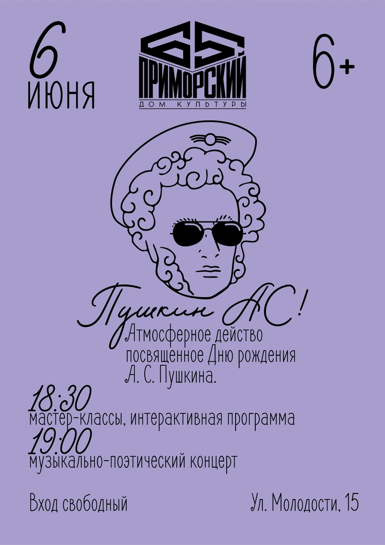 – Пушкин – наше всё! И мы готовы возвышенно и красиво провести этот вечер с вами! В 18.30 – мастер-классы, а в 19 часов концерт в большом зале. Исполнители и творческие коллективы со всего Советского района будут читать стихи Александра Сергеевича, петь и танцевать, – рассказывают организаторы атмосферного действа «Пушкин АС».
