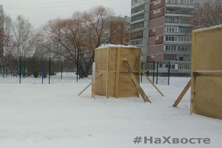 Во дворе дома № 1 по улице Демакова начались работы по строительству самого большого снежного городка в микрорайоне Щ, да и, наверное, во всём Советском районе.