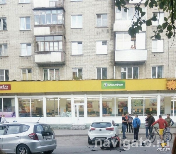 Очевидцы сообщают, что водитель корейского автомобиля поворачивал в парковочный карман, когда ехавший за ним мотоциклист попытался поднять свой байк на заднее колесо и влетел в хэтчбек.