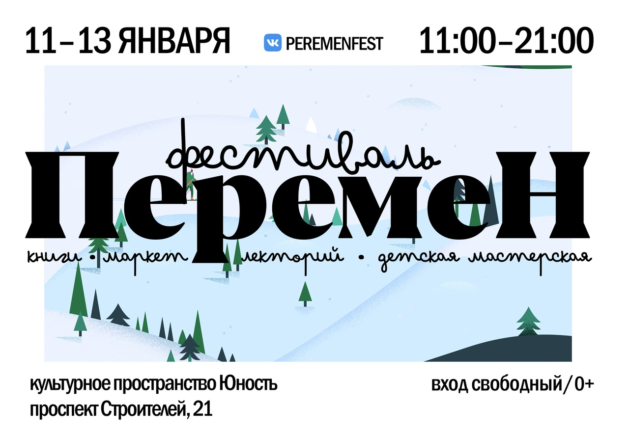 С 11 по 13 января в культурном пространстве «Юность» (проспект Строителей, 21) пройдёт книжный фестиваль Перемен!