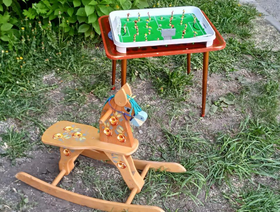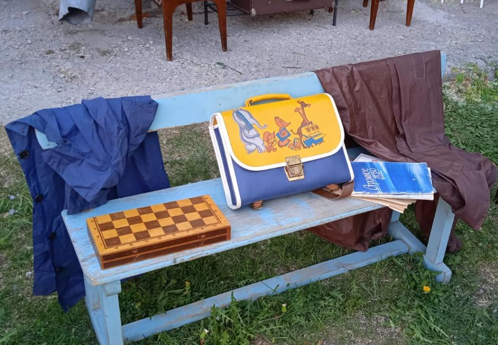 Инсталляцию повседневной жизни Академгородка 70-х годов «А у нас во дворе» организовали непосредственно на улице Правды, 4, где расположена легендарная музейная квартира. Её хозяйка Анастасия Близнюк встречала гостей в летнем костюме из креп-шифона, бывшего дефицитом в 70-е годы. Здесь была воссоздана атмосфера советского детства или юности, хорошо знакомая рожденным в СССР. Сколько раз в жизни мы видели эти картины! На деревянной лавочке голубого цвета лежит школьный ранец, который даже без учебников был тяжелым, потому что тогда ученические рюкзаки шили из плотной свиной кожи или нескольких слоев ткани, клеёнки и дерматина. Помните, какую зависть вызывали в те годы настольные игры «Футбол» или «Хоккей»? Если хотя бы у кого-то из соседских ребят была такая игра, весь двор приходил участвовать и болеть в настольном чемпионате. 40-50 лет назад дети умели делиться с друзьями своими сокровищами…