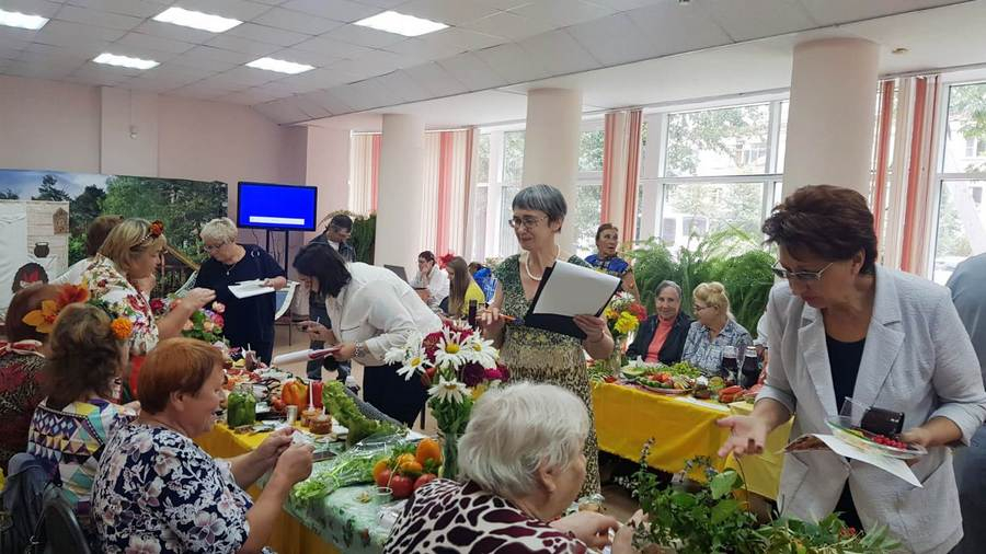 На столах красовались букеты августа, композиции из даров природы и садоводческой продукции. Члены жюри дегустировали заготовки, приготовленные на долгую сибирскую зиму, а также кулинарные шедевры с использованием выращенных плодов.