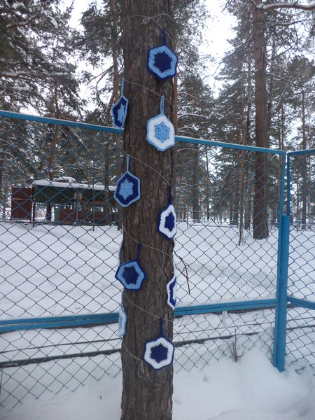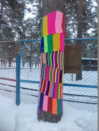 Параллельно прошёл ещё один конкурс – «Тёплый парк». Любой участник мог выбрать дерево и обернуть его ствол ярким текстилем или украсить игрушками собственного производства. Участвовали в конкурсе не только семьи, но и группы коллег, единомышленников. В их числе – МБУ «КЦСОН» и штаб трудовых отрядов Советского района. Все умельцы и рукодельницы постарались на славу, но особо отметили самую юную мастерицу Арину Кожухову, украсившую кустарник яркими нитяными шарами, кистями и помпонами.