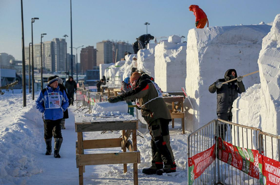 В Новосибирске 4 января начался конкурс снежной скульптуры. В этом году его из Первомайского сквера перенесли в парк «Арена». Мастера поборются за приз мэра города Новосибирска.