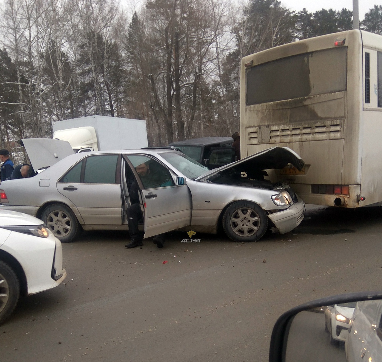 Крупное ДТП на Бердском шоссе: столкнулись четыре машины и автобус