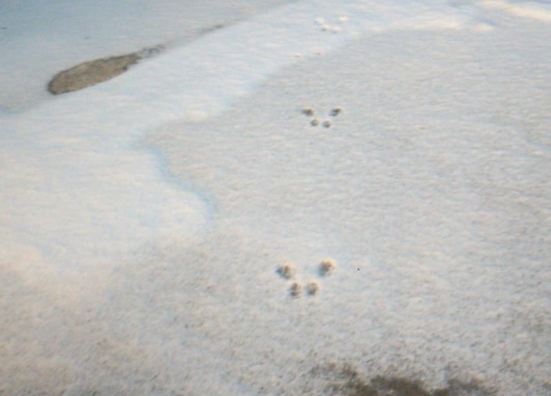 Предполагаю, что это может быть заяц: судя по всему, животное передвигалось прыжками. Но, насколько помню из школьной программы, у зайцев следы другой формы. Да и откуда дикие животные взялись в многолюдном центре Академгородка? Надеюсь, кто-нибудь из читателей сайта хорошо разбирается в зоологии и даст подсказку. Или же корреспонденты «Навигатора» зададут вопрос специалисту в этой области. Любопытно узнать, с кем мы можем внезапно встретиться на улицах Верхней зоны!..