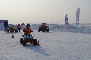 Всего принять участие в первой Квадро-Масленице решились 30 человек. Два старта – для совсем юных участников и для взрослых. У малышей дистанция предельно проста: необходимо проехать фигурно между конусами. Участники хоть и совсем юны, но уже показывают, как справляются с квадроциклами.