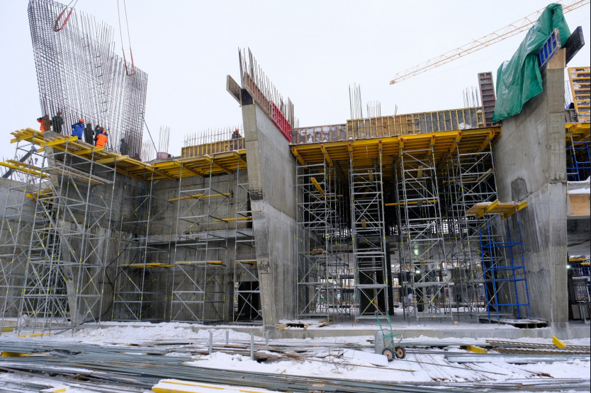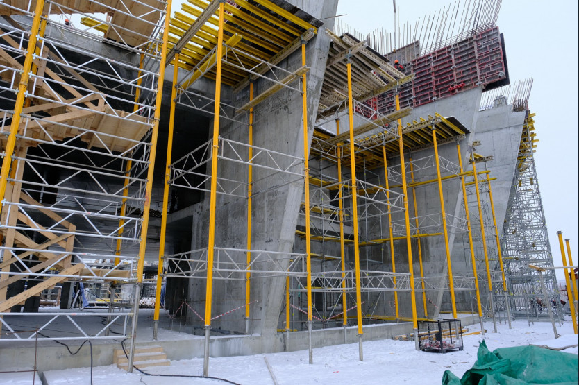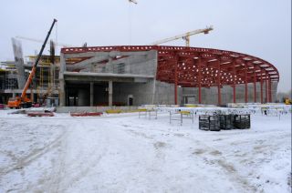 Устройство свайного фундамента ледовой арены, состоящего из полутора тысяч свай, начали в сентябре 2019 года. Сейчас строители ведут монолитные работы на уровне пятого этажа из шести, на площадку поступают металлические конструкции кровли и фасада.