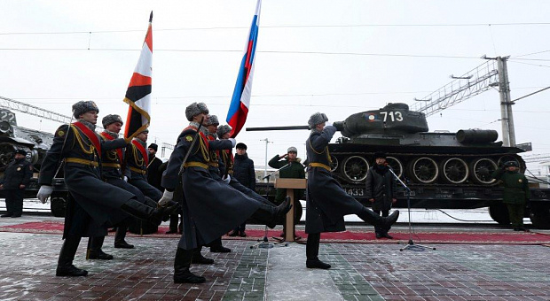– Сегодня в сибирской столице знаменательный день: мы встречаем эшелон легендарных Т-34. В кинотеатрах города с триумфом демонстрируется фильм с таким же названием, на параде Победы в Новосибирске моторизированную колонну также возглавляет танк Т-34. Такое внимание неслучайно, потому что этот танк – один из символов Победы, так же как и само здание новосибирского железнодорожного вокзала. Отсюда уходили сибирские полки и дивизии на защиту Москвы, Сталинграда, для освобождения Европы, отсюда отправлялись десятки тысяч эшелонов с боеприпасами и военной техникой, – сказал первый заместитель мэра Геннадий Захаров, обращаясь к участникам праздничного митинга, посвященного прибытию эшелона военной техники. – Мы гордимся нашими воинами и тружениками тыла. Сегодня, отправляя в дальнюю дорогу состав с танками Т-34, можно уверенно говорить: мы обеспечили связующее звено эстафеты патриотизма поколений по всей нашей великой Родине, на каждой станции, в каждом городе на пути следования эшелона.