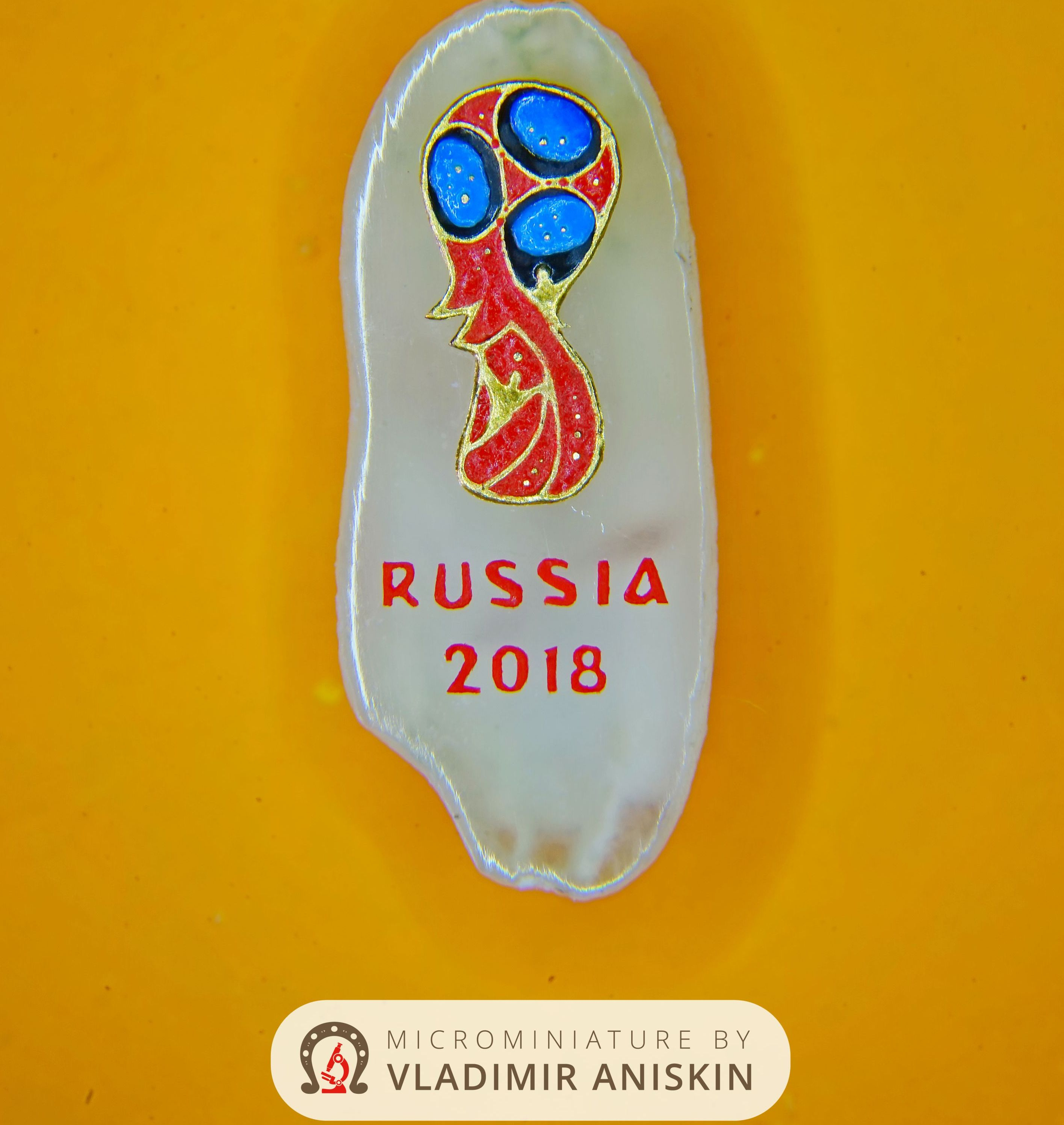 – С зёрнами риса имел дело неоднократно, так что особых сложностей не возникло: на миниатюру ушло около недели и меньше грамма золота. Признаться, я не футбольный болельщик – просто решил откликнуться на такое знаменательное событие. Планирую также в ближайшее время изготовить миниатюрный кубок мундиаля и символ турнира – Волка Забиваку, – сообщил Анискин.