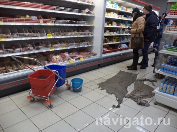 Торговые работники трезво оценили ситуацию и продолжили обслуживание покупателей параллельно с устранением наводнения. Посетителей в валенках продавцы просили остаться в незатопленной зоне камеры хранения. По их требованию персонал выносил им все  необходимые продукты, а они расплачивались в зоне касс, расположенной рядом.