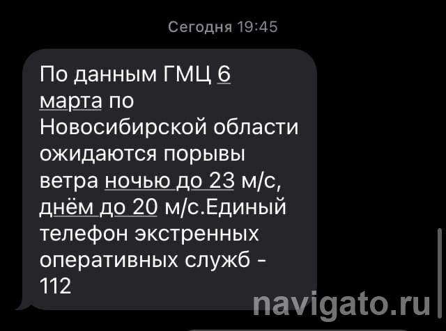 По данным новосибирского гидрометцентра, 6 марта ночью ожидаются порывы ветра до 23 метров в секунду, а днем – до 20 метров в секунду. Единый телефон экстренных оперативных служб – 112, – сообщили в МЧС по НСО.