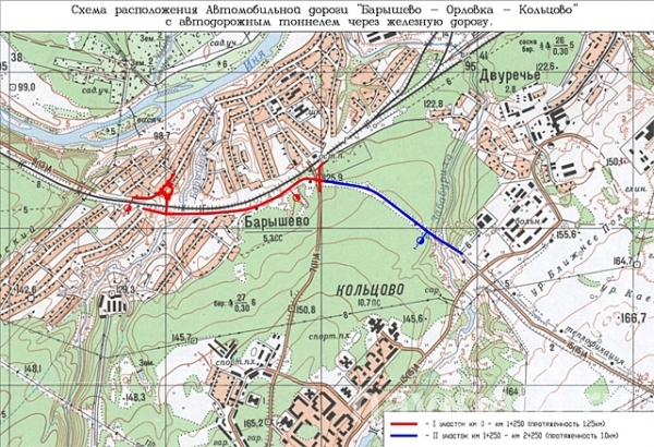 На сайте госзакупок размещена информация о том, что протяженность автодороги «Барышево – Орловка – Кольцово» составит 1,249 км, а длина тоннеля под железной дорогой – 31,2 метра. Ширина проезжей части будет от 8 до 15 м, тротуар – 1 м, покрытие – щебеночно-мастичный асфальтобетон. На дороге будет барьерное ограждение, 5 автобусных остановок, 127 электрических опор, система дорожного метеоконтроля и т.д.
