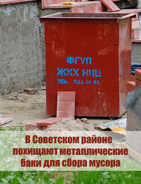 Неизвестные похищают металлические мусорные баки, установленные около многоквартирных домов в Советском районе. Об этом несколько дней назад сообщили в ФГУП «ЖКХ ННЦ».