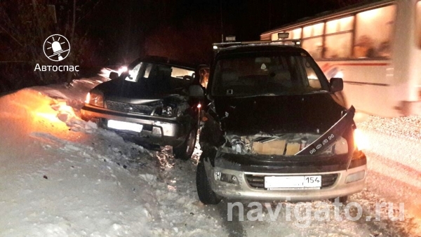 Микроавтобус Тойота выбросило на встречку в Ниссан в Академгородке