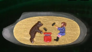 Микроминиатюрист Владимир Анискин из Академгородка завершил работу над своей первой движущейся миниатюрой. Он разместил фигурки Мужика и Медведя на рисовом зернышке.